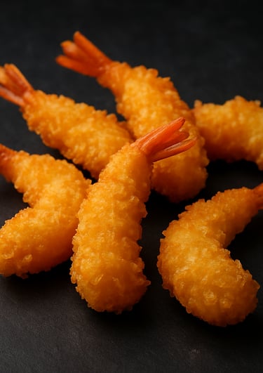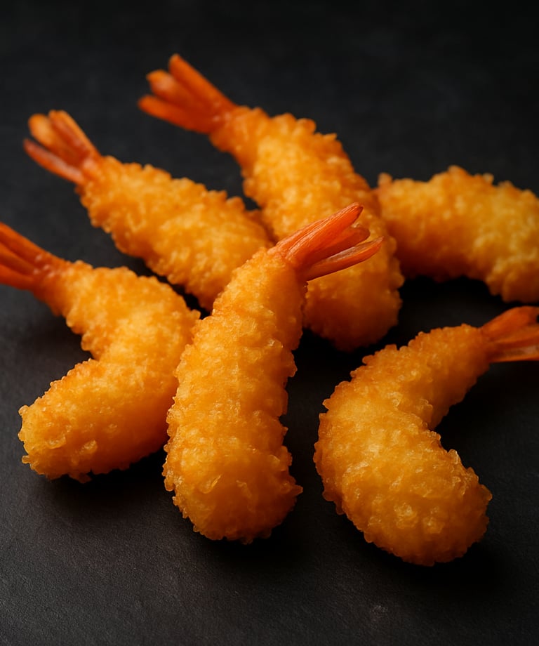 Des crevettes croustillantes panées , dorées à la perfection.